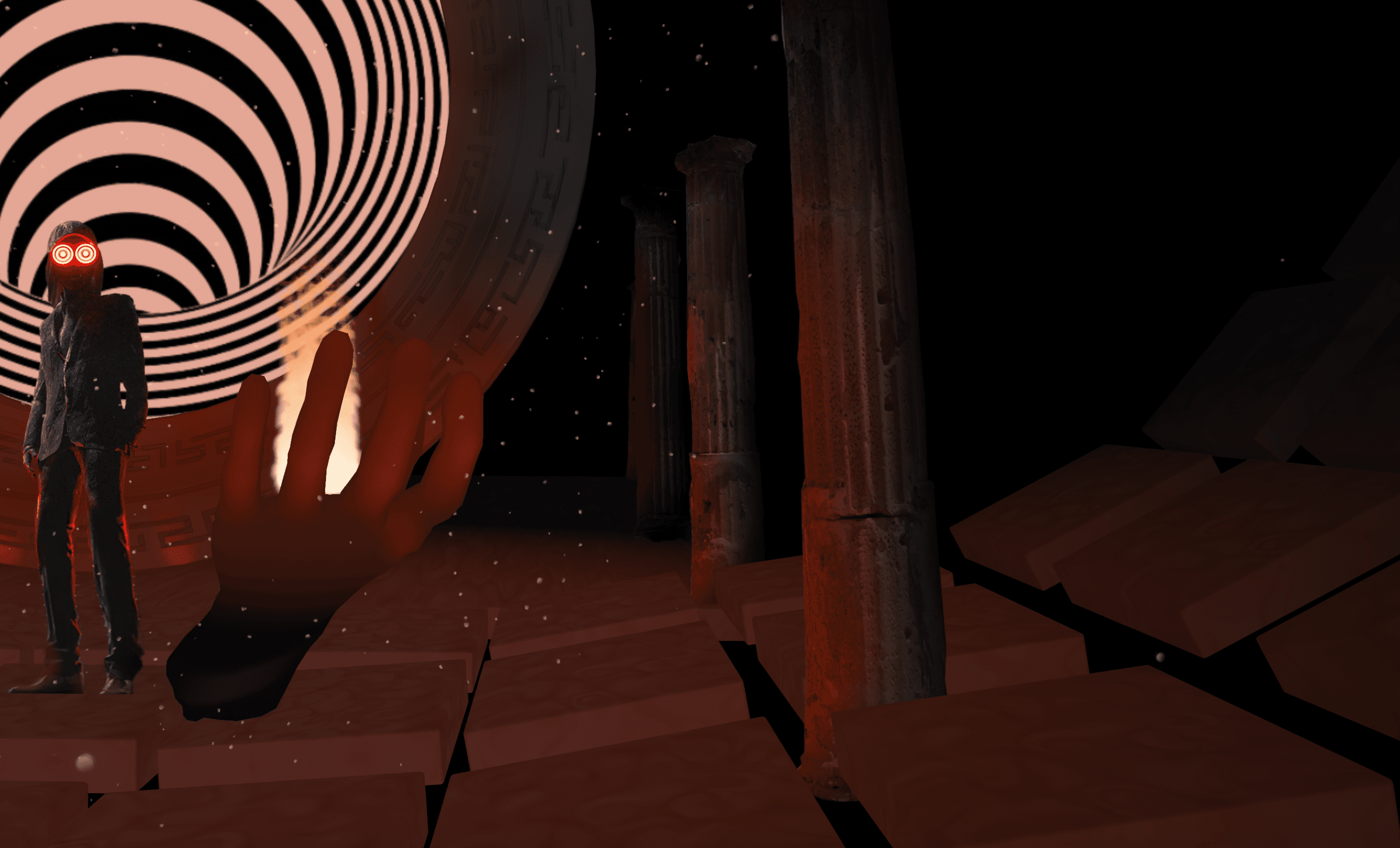 The environment responds dynamically to user input: the floor subtly shifts under hover, interactive elements trigger motion and light, and animated fire effects extend directly from the character’s hands. Every interaction is intentional, reinforcing the intensity and physicality of Rezz’s live shows in a browser-based format.
